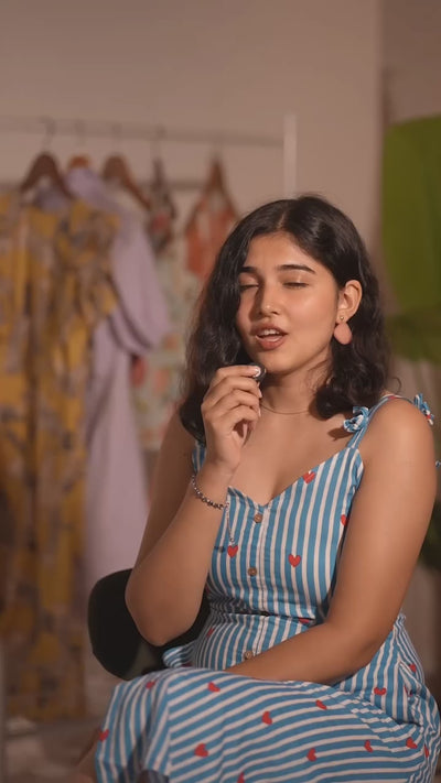 Meet Sunset Haze – the top that’s equal parts playful and chic. Crafted in soft, airy cotton, it features a smocked fit with feminine bow-tie details that make it stand out without trying too hard. Whether you’re looking for a casual top for women for a coffee date or an evening wear top that transitions smoothly into a dinner plan, this one does it all. The subtle stripes in earthy tones keep it timeless and versatile, so you can style it with denims, palazzos, or skirts depending on your mood. Designed for comfort but tailored for compliments, Sunset Haze is that easy-to-love piece that you’ll keep reaching for. Think of it as your golden-hour outfit – warm, flattering, and always picture-perfect.